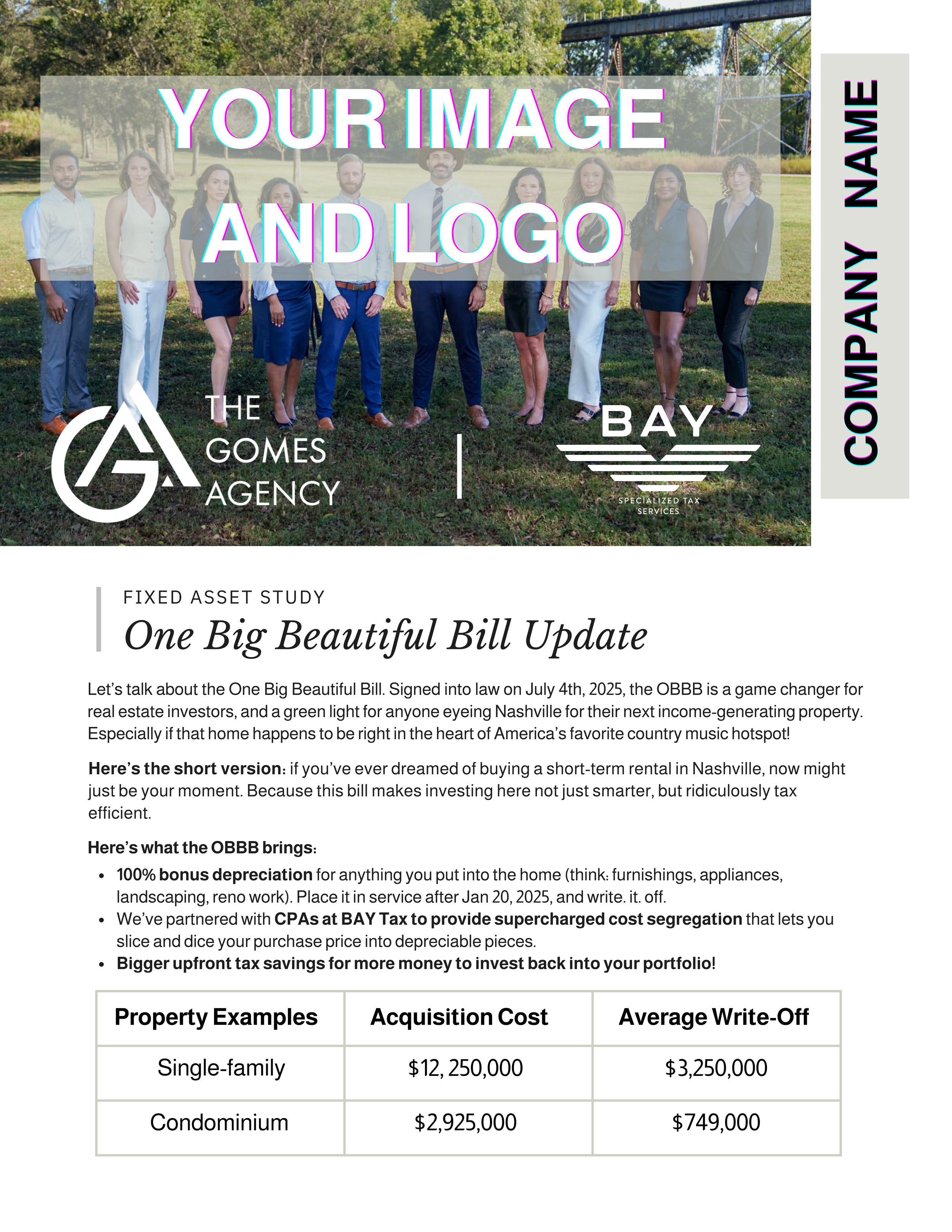 We help your clients uncover tax deductions from past and future real estate closings using cost segregation and 100% bonus depreciation under the new real estate provisions in the One Big Beautiful Bill.